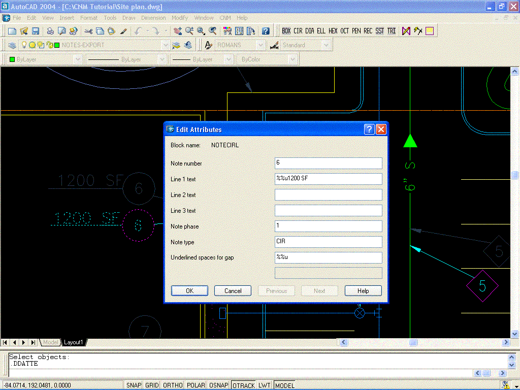 After the notes are inserted, you can edit each note if needed. Also, from time to time you may find it easier to copy an existing note and then edit it. You may change any attribute of any bubble block, ie: change the note number, change a quantity, or other field of text. You may not, however, change the style of one bubble block into another style. You would have to insert another block of a different style. |