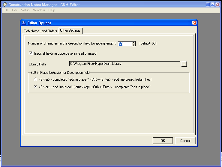 Lastly, under the Editor Options there is a tab for Other Settings. These fields directly relate to the editor as each instruction field implies. In order to change the word wrap in the editor to allow more or less characters per line, simply change the number. Again, feel free to change each setting to explore how each one affects the control of the notes editor. |