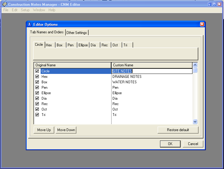For example, here the Circle Tab is being set to be "Site Notes". |