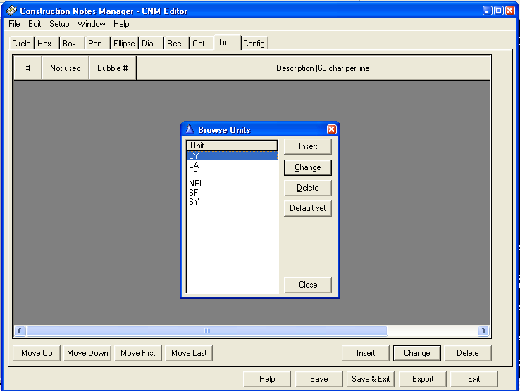The following figure shows the units dialogue box. Here you can change the names of particular units or add additional units that you would desire. |